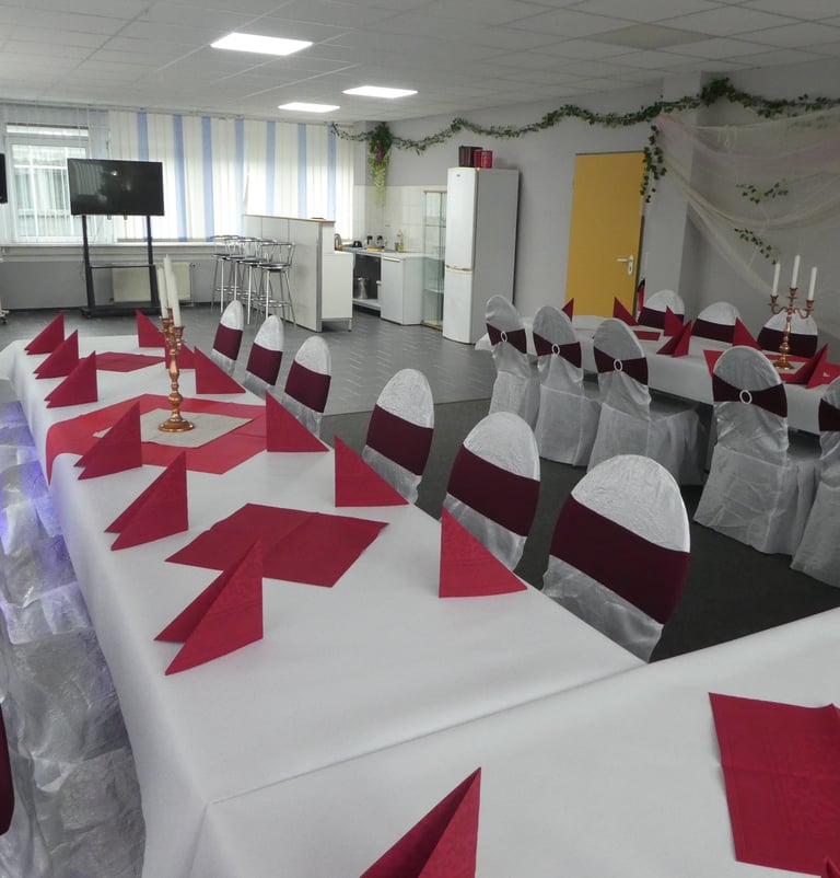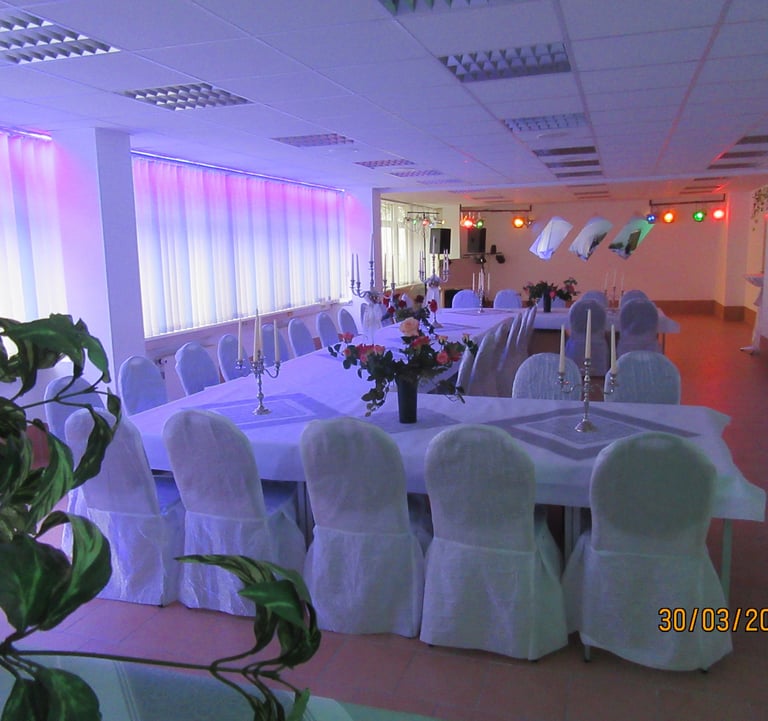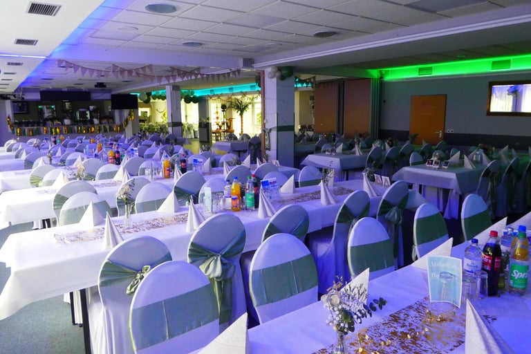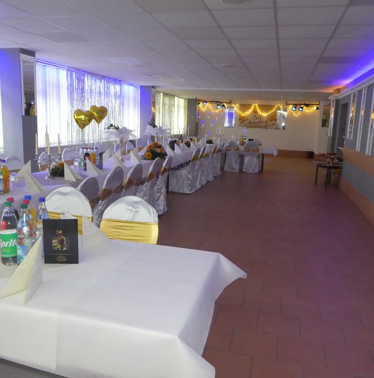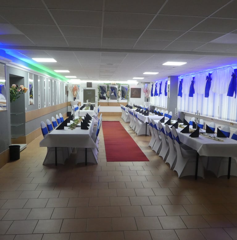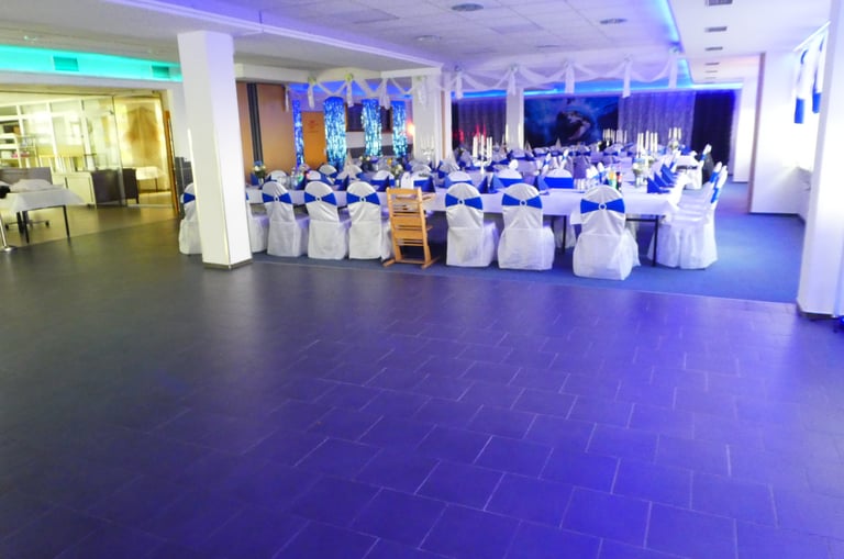 Festraum 6 AB bis 80 Personen 550 m² Eingang B 1 Saal - Bar - Terrasse - Lounge - Grillplatz - eigener Parkplatz