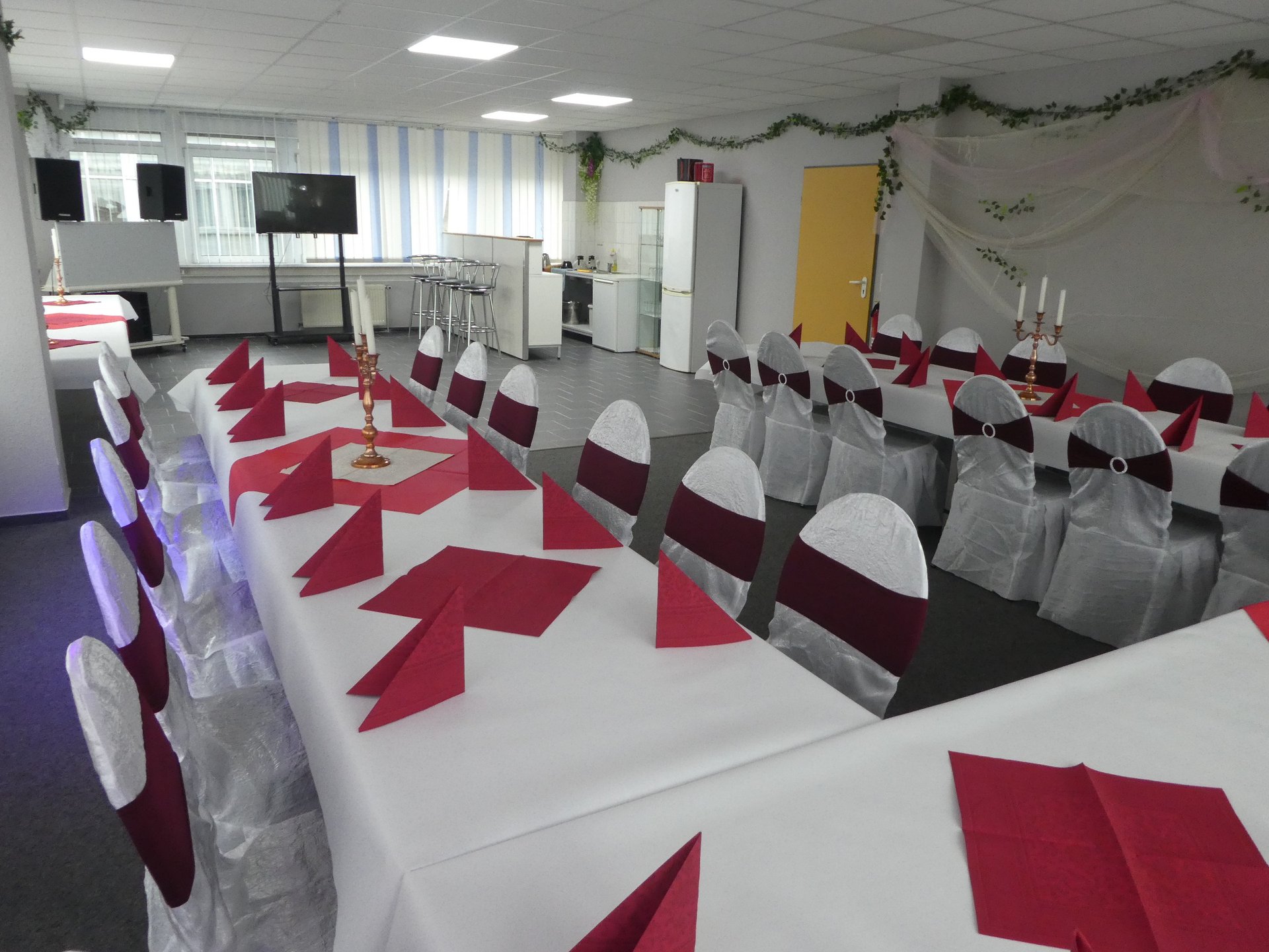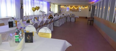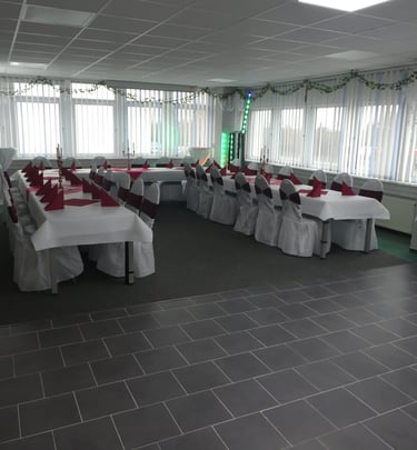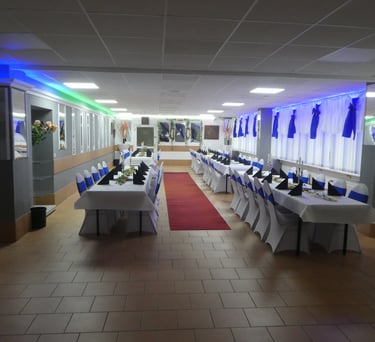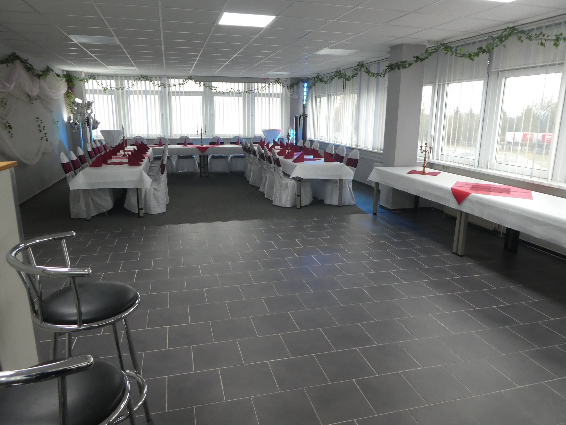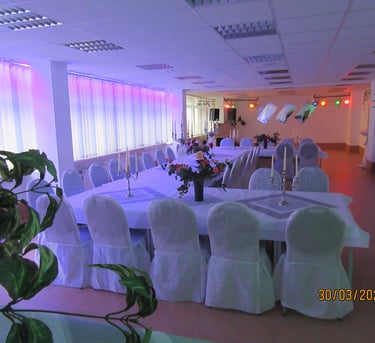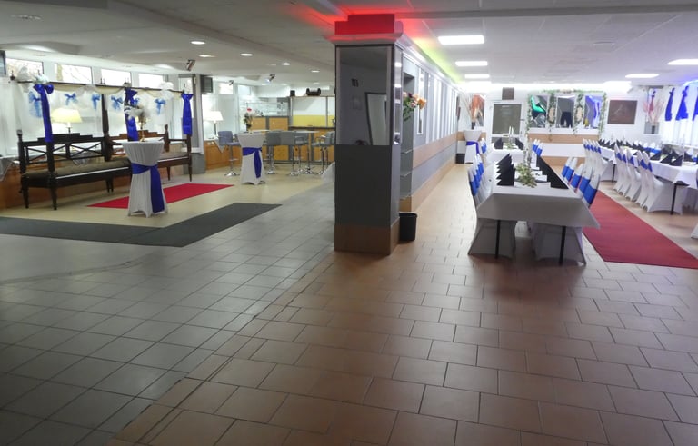 Festraum 6 AB bis 80 Personen 550 m² Eingang B 1 Saal - Bar - Terrasse - Lounge - Grillplatz - eigener Parkplatz
